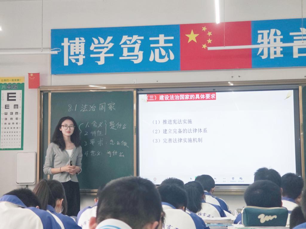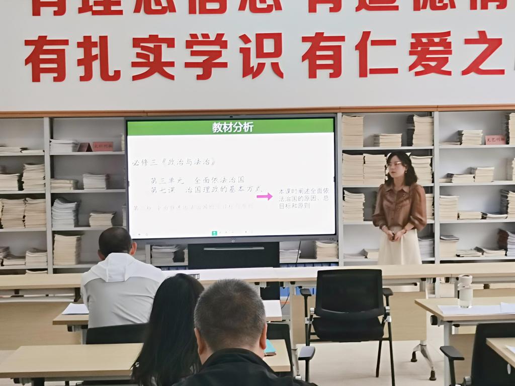 5月14日,学科教学(思政)研究生开展说课交流活动。他们结合高中思想政治课程特点,从教材分析、教学目标、教学方法及课堂实践等方面展开阐述,分享了《科学立法》《全面推进依法治国的总目标与原则》《全民守法》课题的教学设计思路。市二中思政教研组教师逐一进行点评,肯定了研究生们的教学基本功与思政元素融入技巧,同时围绕学情把握、互动设计、PPT制作、时间分配等提出改进建议。授课及说课活动结束后,思政教研组组织评课会,从教学目标达成、师生互动效果、思政元素渗透等维度进行点评,既肯定情境创设的亮点,也针对板书设计、问题链优化、驾驭课堂能力提升、注重课堂生成等方面提出改进建议。