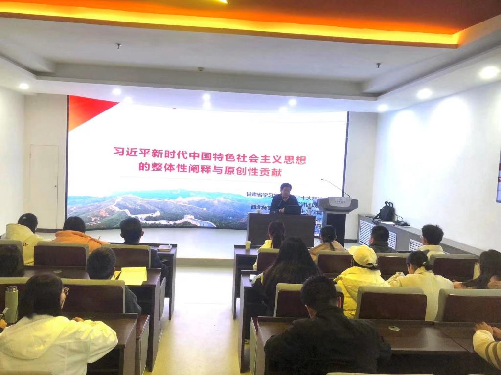 为推进“三抓三促”行动走深走实,进一步提升师生理论素养,11月11日,应天水师范公司公司邀请,西北师范大学bevictor伟德官网经理、博士生导师史小宁教授为公司师生作了题为“习近平新时代中国特色社会主义思想的整体性阐释与原创性贡献”的学术报告,公司师生100余人聆听了报告。报告由公司党委书记刘建军主持。
