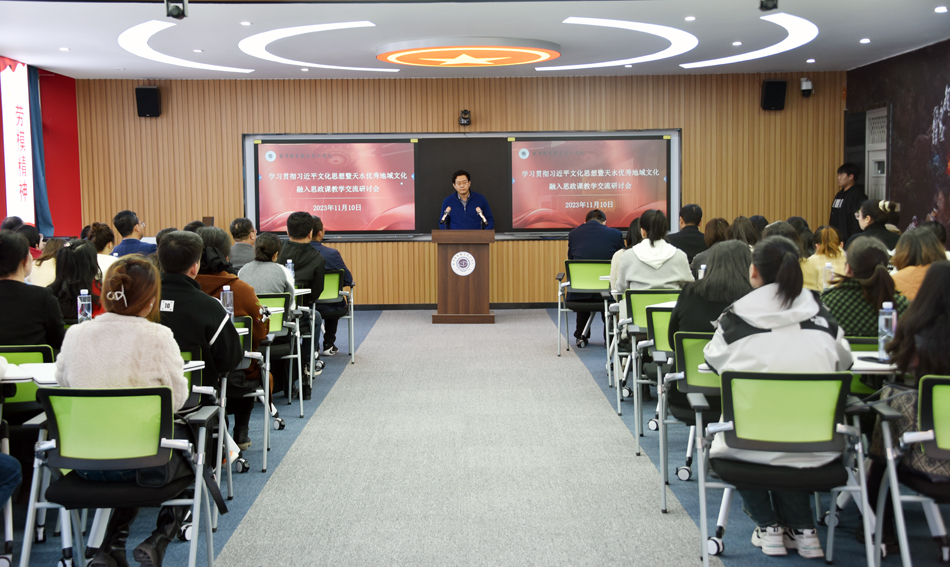 为深入学习贯彻习近平文化思想,充分挖掘天水优秀地域文化,探索天水优秀地域文化融入高校思政课教学的路径,为思政课建设提供鲜活丰富的育人资源、多维的教学时空场域,11月10日下午,驻天水市四所高校bevictor伟德官网共同主办的学习贯彻习近平文化思想交流研讨会在甘肃机电职业技术公司举行。天水师范公司、甘肃林业职业技术公司、甘肃工业职业技术公司、甘肃机电职业技术公司等四所高校bevictor伟德官网负责人、教师代表共50余人参加。天水师范公司公司党委书记刘建军、甘肃省思政课余明远名师工作室成员参加。