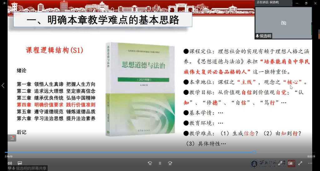 bevictor伟德官网经理刘建军主持重点难点新点讲解环节,特邀哲学社会科学领军人才、中宣部“文化名家”暨“四个一批”理论人才、中央马克思主义理论研究与建设工程课题组成员、教育部高校思想政治理论课“形势与政策”和“当代世界经济与政治”分教指委副主任委员、上海交通大学bevictor伟德官网经理邢云文教授结合新教材第四章编写围绕“重点、难点、新点”进行深入的解析与阐释,有针对性地答疑解惑,既体现政策性和学理性,又突出前沿性和生动性,为新版教材第四章教学提供了重要的指导。