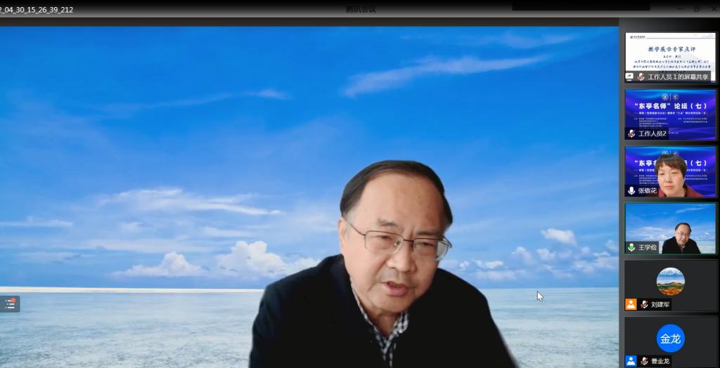 甘肃省社科联副主席、教育部高校思想政治工作创新发展中心(兰州大学)主任、教育部高等公司马克思主义理论类专业教学指导委员会委员、兰州大学王学俭教授综合点评了两位老师的示范与分享,指出两位教师“内容熟悉,重点突出”“紧扣主题,创新拓展”“理论深刻,联系实际”“备课认真,讲解透彻”,赞扬两位教师“精准备课有底气,认真授课讲得透,融会贯通接地气”,并寄语两位教师在思政课教学研究中更上一层楼。