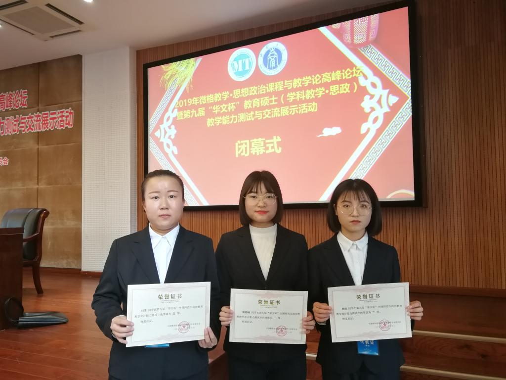 2017级教育硕士在2018年全国全日制首届教育硕士学科教学(思政)专业教学技能大赛中获得二、三等奖