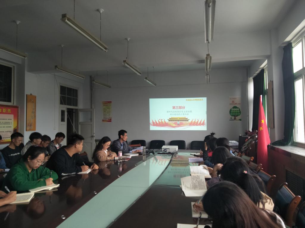 会上,刘书记突出强调了党的政治建设的重要地位,加强政治建设是新时代党的建设的总要求,高校办学必须要坚持正确的政治方向。他要求每位党员都要自觉成为正确政治思想的宣传者,加强自身党性锻炼,注重提高政治觉悟和政治能力。充分发挥党员的先锋模范作用和党支部的战斗堡垒作用。