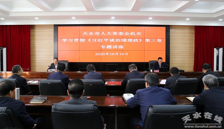 10月16日,天水市人大常委会机关举办学习贯彻《习近平谈治国理政》第三卷专题讲座,邀请天水师范公司bevictor伟德官网副经理、市委讲师团成员余明远教授作《习近平以人民为中心发展观的理论来源与核心要义》的专题辅导报告。