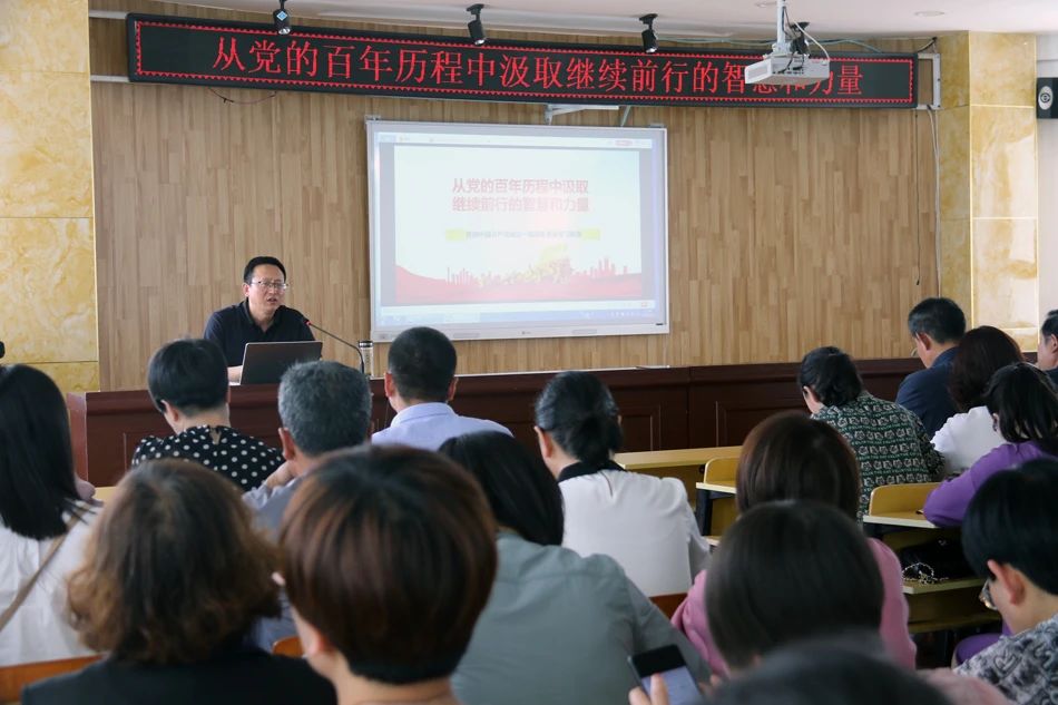 在礼县实验小学,天水师范公司bevictor伟德官网余明远教授,面向礼县实验小学思政课专兼职教师以及全体党员,做了题为“从党的百年历程中汲取继续前行的智慧和力量”的学术报告。报告以党的理论探索史和非凡奋斗史为逻辑体系,阐释开展党史学习教育的重大意义、党史学习的重点内容、开展党史学习教育的工作要求,着重针对小学思政课教师的困惑和困难,剖析了根据小员工思想实际创新性教学,引导思政课教师在党史学习教育中明理、增信、崇德、力行,倡导其他教师充分挖掘和运用课程思政资源,构建思政课程与课程思政同向同行、同频共振的良好格局。