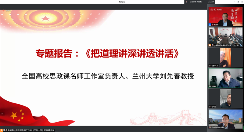 5月15日,由教育部全国高校思政课刘先春名师工作室、兰州大学bevictor伟德官网主办,天水师范公司bevictor伟德官网、甘肃民族师范公司bevictor伟德官网、陇南师范高等专科公司bevictor伟德官网、兰州科技职业公司、菏泽公司bevictor伟德官网、黔东南民族职业技术公司马列主义教研部参与组织的“学习贯彻习近平总书记考察中国人民大学重要讲话精神暨教育部全国高校思政课名师工作室(兰州大学-刘先春)2022年第一期集体备课会”召开,会议采取线下与线上相结合的方式进行,由兰州大学bevictor伟德官网副经理杨志超主持。