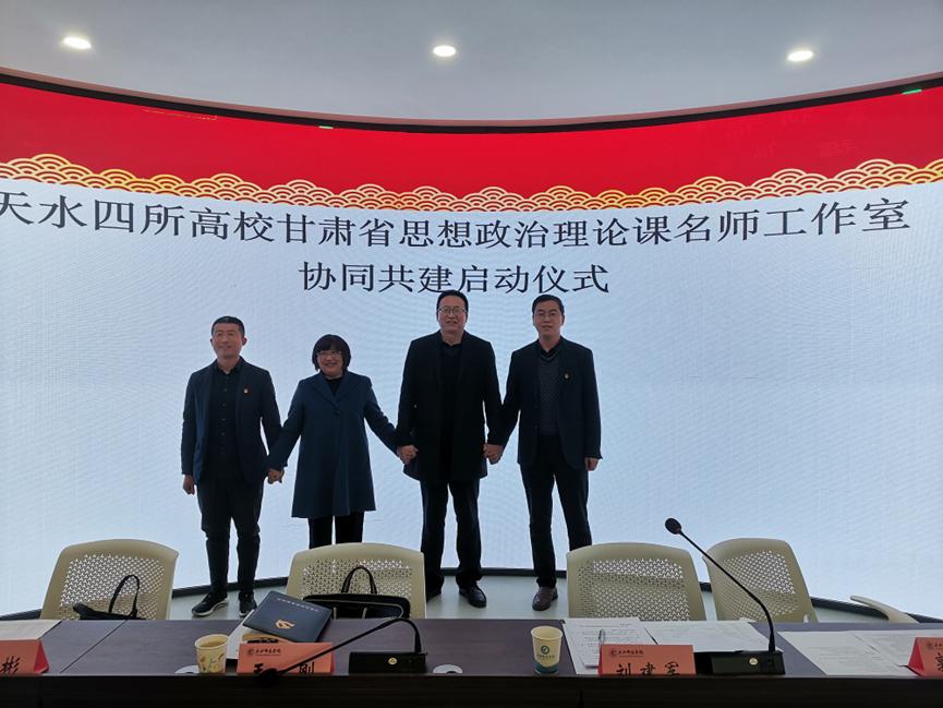 为进一步密切合作交流,实现优势互补,促进共同发展,深入学习贯彻落实习近平新时代中国特色社会主义思想和党的二十大精神,4月8日,天水师范公司省级思政课余明远名师工作室、甘肃林业职业技术公司省级思政课郭三龙名师工作室、甘肃工业职业技术公司省级思政课黄彬名师工作室、甘肃工业职业技术公司省级思政课史维波名师工作室等四个驻市高校的4家省级思政课名师工作室举行同共建活动启动仪式,并进行宣讲示范交流活动。