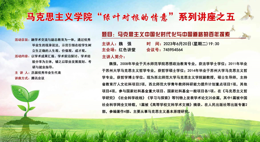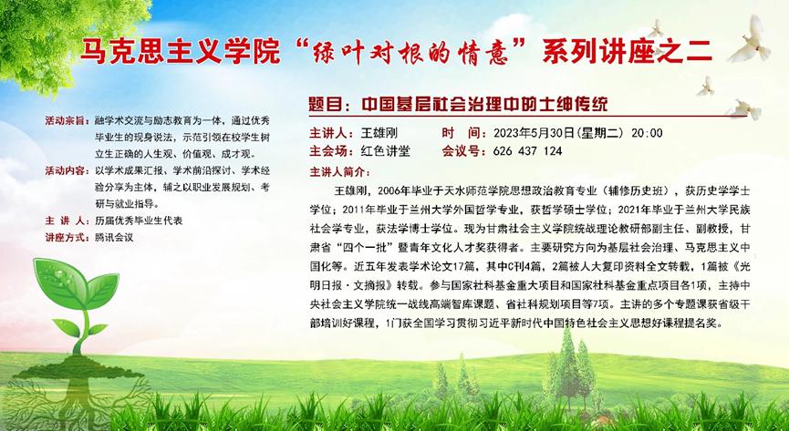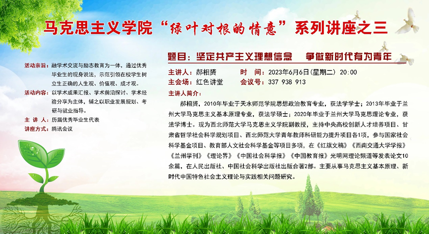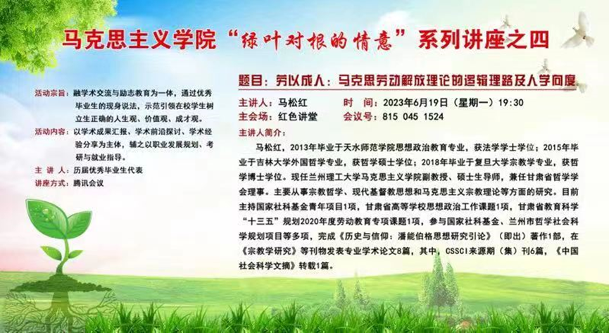 活动邀请李靖(一级美术师、天水美术馆馆长、天水书画院经理)、刘华荣(博士、兰州交通大学副教授)、王雄刚(博士、甘肃社会主义公司副教授)、郝相赟(博士、西北师范大学副教授)、马松红(博士、兰州理工大学副教授)、魏强(博士、西北师范大学副教授)等六位优秀毕业生代表现身说法,分享他们的成长经验、学术成果,并就如何科学制定职业发展规划、如何有效地进行专业学习、如何增强自己的就业竞争力、如何选择考研方向及备考等问题,与在校员工进行了深入细致地交流,充分发挥自身示范引领作用。