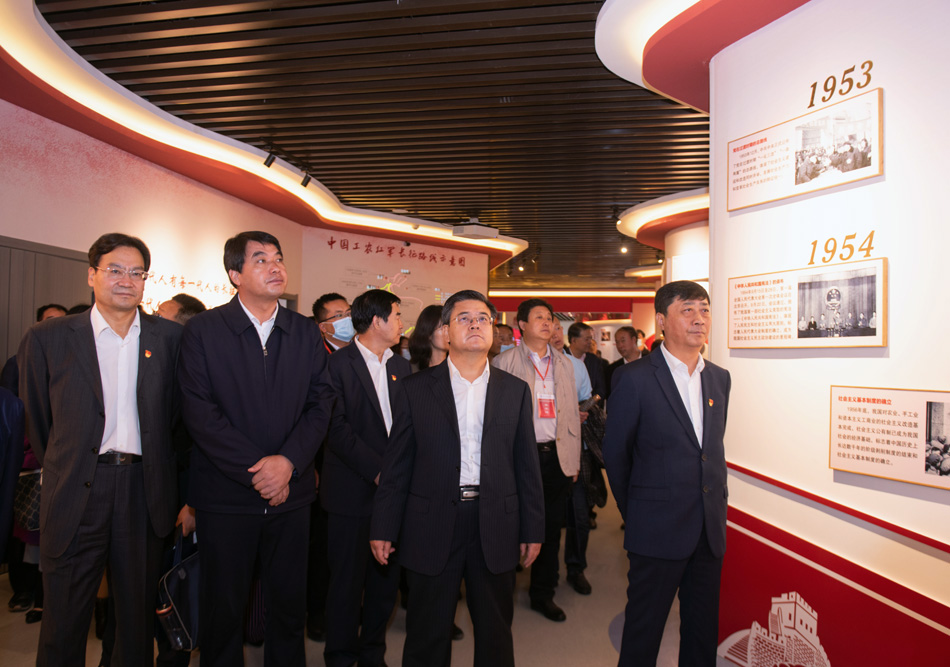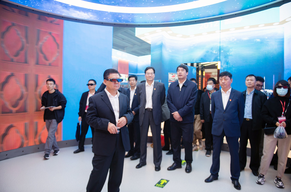与会领导和专家参观了红色文化教育体验馆。体验馆以中国共产党百年光辉历程为主线,通过重点展示“四史”、红色甘肃、习近平总书记在甘肃、共产党人精神谱系、全国优秀共产党员和共和国功勋榜样事迹、党员警示教育等主题,运用VR虚拟互动体验、360度环幕沉浸式体验、智慧墙等现代科技手段,再现中华民族从站起来、富起来到强起来的伟大征程,展现甘肃人民艰苦奋斗的革命史和建设史。是集讲解、观摩、体验为一体,融合党史教育、思政教学、红色文化传承等综合功能的基地,为学习党史、新中国史、改革开放史、社会主义发展史和甘肃红色文化提供了鲜活的教材。