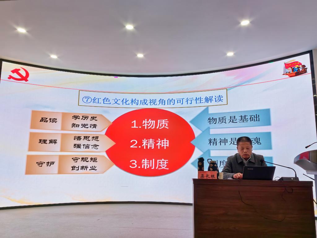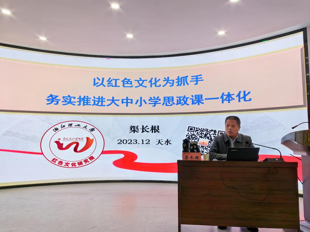为贯彻落实习近平总书记在公司思想政治理论课教师座谈会上的重要讲话精神,深入学习习近平文化思想,进一步发挥公司作为教育部大中小学思政课一体化共同体(甘肃)建设成员单位、甘肃省教育系统红色文化育人共同体牵头单位作用,提升红色文化助推大中小思政课一体化建设实效。12月11日,公司邀请教育部高校思政课教指委《毛泽东思想和中国特色社会主义理论体系概论》分教指委委员、中国红色文化研究会常务理事、浙江省马克思主义理论专业教指委副主任委员、浙江理工大学红色文化研究院经理渠长根教授来校作了题为“以红色文化为抓手 务实推进大中小思政课一体化”的专题讲座,此次讲座纳入天水师范公司红色文化研究院“红色讲堂”第四讲。讲座由公司党委书记刘建军主持,公司教师、研究生和本科生共100余人聆听讲座。