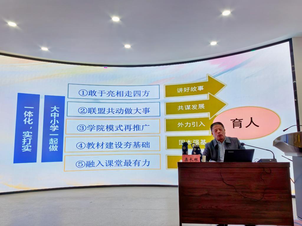 渠长根教授从“前提:一体化需要抓手”、“核心:红色文化是最佳抓手”、“关键:努力用好红色文化抓手”三个方面系统进行了阐述,深入解读了党中央、教育部近年发布的关于公司思想政治课一体化建设的系列政策文件,立足教育规律、青少年成长规律、人类成长规律,指出一体化是系统工程,适宜的抓手必不可少,认为红色文化是一体化的最佳抓手,结合浙江理工大学bevictor伟德官网多年来用好红色文化推进大中小思政课一体化的相关实践经验,提出要以大中小学学段为“经”,以思政课程的要素为“纬”,建设纵向衔接、横向贯通、螺旋上升的全学段思政课程体系,用红色文化服务思政课一体化,努力做实大中小学一体化、区域一体化、党政军民学一体化、课程思政与思政课程一体化、理念与行动一体化,并祝福公司红色文化融入大中小学思政课有声有色。
